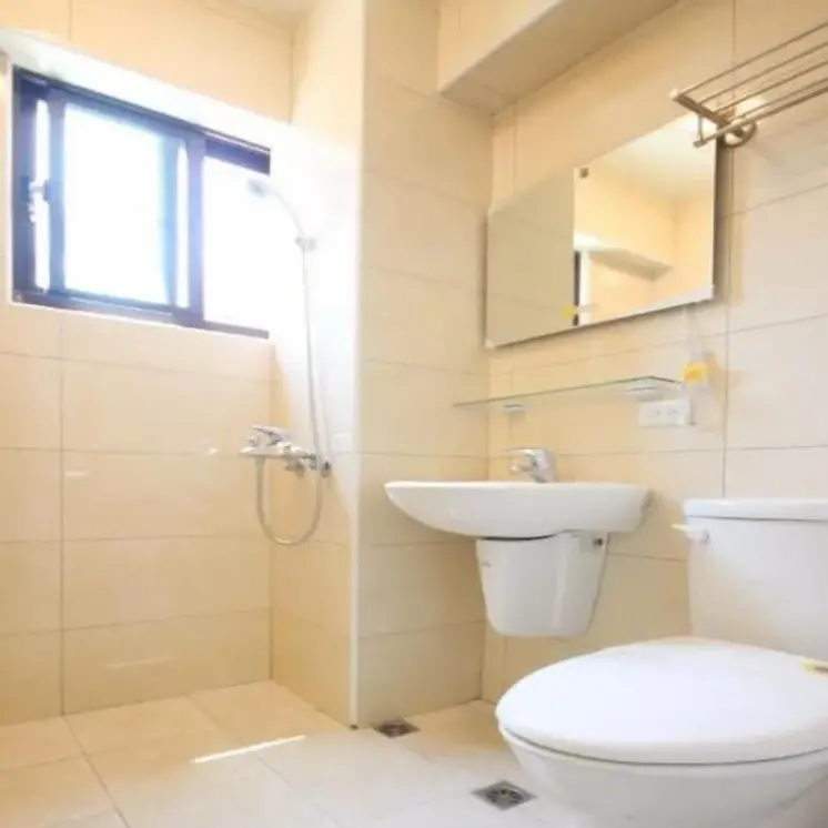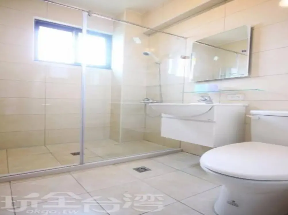 浴室的對外窗太透明,建議加貼霧面紙讓女住客沐浴能更加安心。